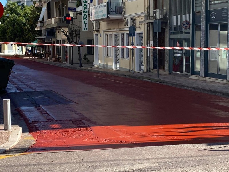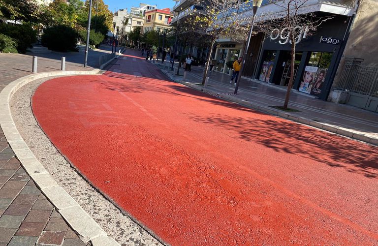 Εγώ όμως, εκείνο που περιμένω να δω, είναι τι θα γίνει με τις πρώτες βροχές, όταν θα αρχίσει όλο αυτό το χρώμα να ξεβάφει. Σε ποιους άραγε, εξπρεσιονιστικούς συνειρμούς θα οδηγηθούμε; Κάπου θα φαίνεται η άσφαλτος, κάπου το «μούφα» κεραμιδί… θα γίνει όλο το κέντρο ένα τεράστιο ερυθρόμαυρο αγγείο.