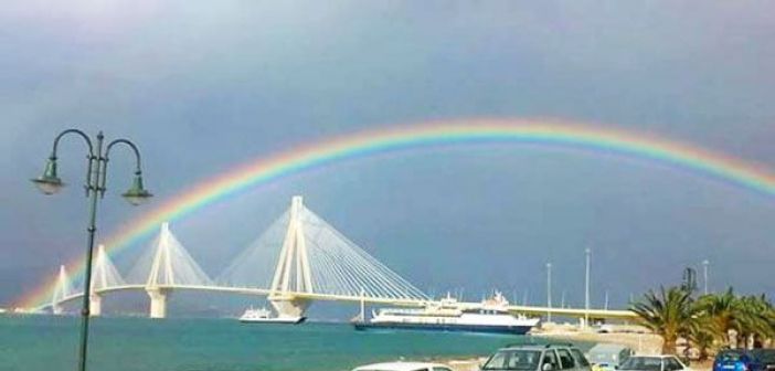 Ρίο – Αντίρριο: Ένα πανέμορφο ουράνιο τόξο εμφανίστηκε ξαφνικά πάνω από την γέφυρα