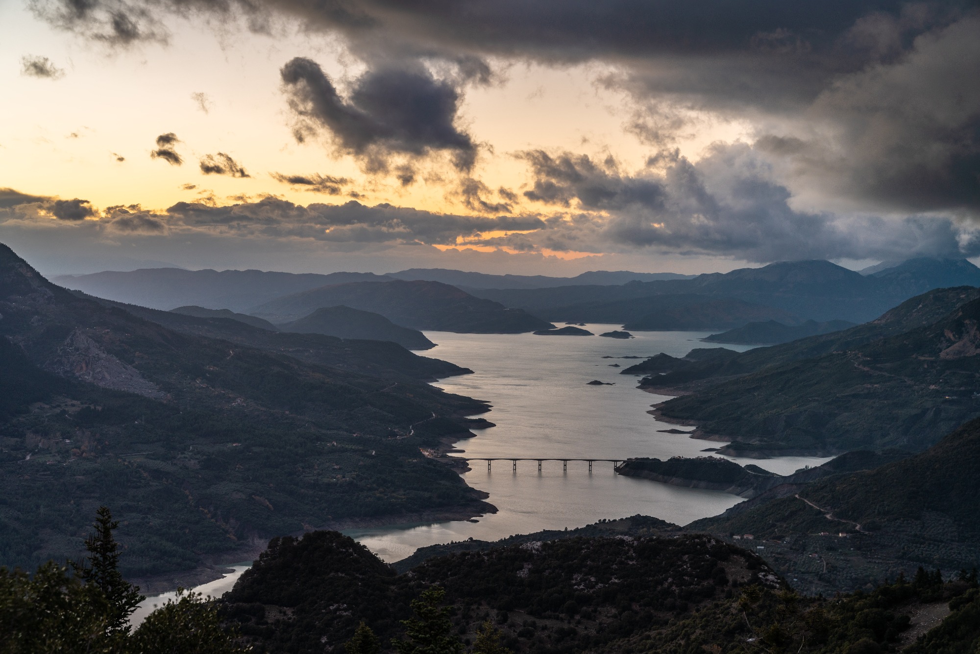 Η λίμνη Κρεμαστών είναι η μεγαλύτερη τεχνητή λίμνη της Ελλάδος και δημιουργήθηκε με την κατασκευή του υδροηλεκτρικού φράγματος των Κρεμαστών το 1965 που συγκεντρώνει τα νερά των ποταμών Αχελώου, Αγραφιώτη, Μέγδοβα (Ταυρωπού) και Τρικεριώτη. Η γέφυρα που ενώνει τους δύο νομούς έχει μήκος 700 μ. και πλάτος 9 μ. Στηρίζεται σε επτά κολώνες, από τις οποίες οι τρεις που βρίσκονται μέσα στο νερό, έχουν ύψος 85 μ.