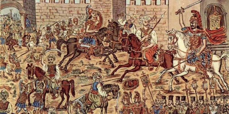 Με αυτοκράτορα του Βυζαντίου τον Κωνσταντίνο Παλαιολόγο και επικεφαλής του οθωμανικού στρατού τον Μωάμεθ Β’, οι χριστιανοί έδωσαν την τελική μάχη απέναντι στις ορδές των μουσουλμάνων πολεμιστών και έπεσαν ηρωϊκά μαχόμενοι.