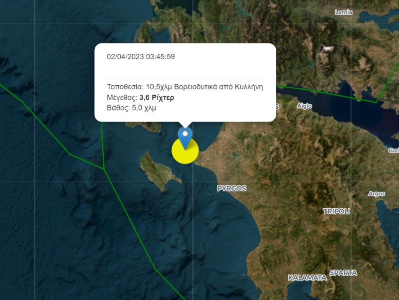 Το επίκεντρο προσδιορίζεται 10.5 χλμ νότια – νοτιοδυτικά της Κυλλήνης.