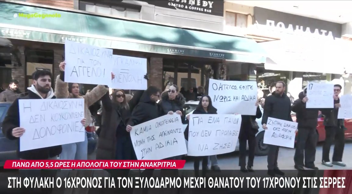 Κατά τη διάρκεια της απολογίας, φίλοι και συγγενείς του θύματος συγκεντρωθήκαν έξω από το Δικαστικό Μέγαρο Σερρών.