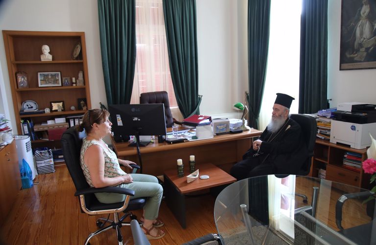 Στη συνέχεια επισκέφθηκε την Εφορεία Αρχαιοτήτων Αιτωλοακαρνανίας και Λευκάδας, όπου συναντήθηκε με την διευθύντρια δρ Ολυμπία Βικάτου, η οποία ενημέρωσε τον Σεβασμιώτατο για τις δράσεις της Εφορείας στο Μεσολόγγι και στην Ναύπακτο, αλλά και σε ολόκληρη την Αιτωλοακαρνανία.