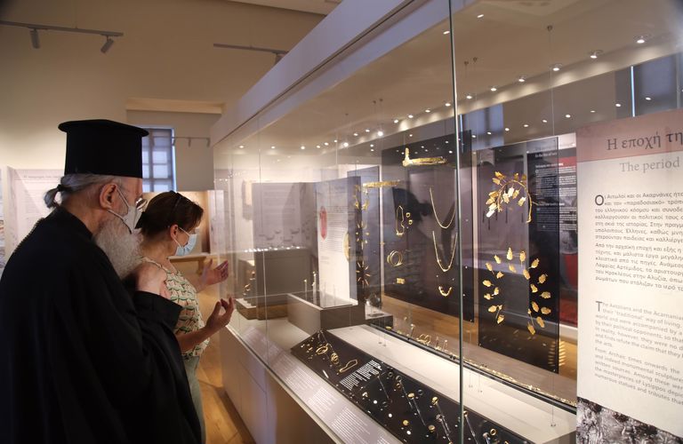 Στη συνέχεια η κα Βικάτου συνόδευσε τον Μητροπολίτη Ναυπάκτου στο Ξενοκράτειο Αρχαιολογικό Μουσείο Ιεράς Πόλεως Μεσολογγίου και τον ξενάγησε στην μόνιμη έκθεση του μουσείου.