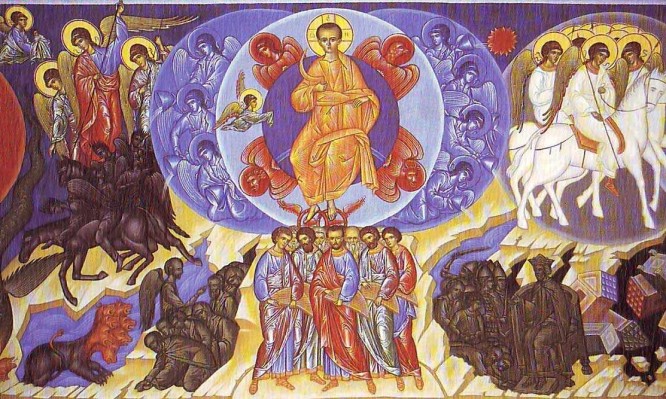 «῞Οταν δὲ ἔλθῃ ὁ υἱὸς τοῦ ἀνθρώπου ἐν τῇ δόξῃ αὐτοῦ καὶ πάντες οἱ ἅγιοι ἄγγελοι μετ᾿ αὐτοῦ, τότε καθίσει ἐπὶ θρόνου δόξης αὐτοῦ, καὶ συναχθήσεται ἔμπροσθεν αὐτοῦ πάντα τὰ ἔθνη, καὶ ἀφοριεῖ αὐτοὺς ἀπ᾿ ἀλλήλων ὥσπερ ὁ ποιμὴν ἀφορίζει τὰ πρόβατα ἀπὸ τῶν ἐρίφων, Καὶ στήσει τὰ μὲν πρόβατα ἐκ δεξιῶν αὐτοῦ, τὰ δὲ ἐρίφια ἐξ εὐωνύμων. Τότε ἐρεῖ ὁ βασιλεὺς τοῖς ἐκ δεξιῶν αὐτοῦ· δεῦτε οἱ εὐλογημένοι τοῦ πατρός μου, κληρονομήσατε τὴν ἡτοιμασμένην ὑμῖν βασιλείαν ἀπὸ καταβολῆς κόσμου. ἐπείνασα γάρ, καὶ ἐδώκατέ μοι φαγεῖν, ἐδίψησα, καὶ ἐποτίσατέ με, ξένος ἤμην, καὶ συνηγάγετέ με, γυμνός, καὶ περιεβάλετέ με, ἠσθένησα, καὶ ἐπεσκέψασθέ με, ἐν φυλακῇ ἤμην, καὶ ἤλθετε πρός με. Τότε ἀποκριθήσονται αὐτῷ οἱ δίκαιοι λέγοντες· κύριε, πότε σε εἴδομεν πεινῶντα καὶ ἐθρέψαμεν, ἢ διψῶντα καὶ ἐποτίσαμεν; Πότε δέ σε εἴδομεν ξένον καὶ συνηγάγομεν, ἢ γυμνὸν καὶ περιεβάλομεν; Πότε δέ σε εἴδομεν ἀσθενῆ ἢ ἐν φυλακῇ, καὶ ἤλθομεν πρός σε; Καὶ ἀποκριθεὶς ὁ βασιλεὺς ἐρεῖ αὐτοῖς· ἀμὴν λέγω ὑμῖν, ἐφ᾿ ὅσον ἐποιήσατε ἑνὶ τούτων τῶν ἀδελφῶν μου τῶν ἐλαχίστων, ἐμοὶ ἐποιήσατε. Τότε ἐρεῖ καὶ τοῖς ἐξ εὐωνύμων· πορεύεσθε ἀπ᾿ ἐμοῦ οἱ κατηραμένοι εἰς τὸ πῦρ τὸ αἰώνιον τὸ ἡτοιμασμένον τῷ διαβόλῳ καὶ τοῖς ἀγγέλοις αὐτοῦ. ἐπείνασα γάρ, καὶ οὐκ ἐδώκατέ μοι φαγεῖν, ἐδίψησα, καὶ οὐκ ἐποτίσατέ με, ξένος ἤμην, καὶ οὐ συνηγάγετέ με, γυμνός, καὶ οὐ περιεβάλετέ με, ἀσθενὴς καὶ ἐν φυλακῇ, καὶ οὐκ ἐπεσκέψασθέ με. Τότε ἀποκριθήσονται αὐτῷ καὶ αὐτοὶ λέγοντες· κύριε, πότε σε εἴδομεν πεινῶντα ἢ διψῶντα ἢ ξένον ἢ γυμνὸν ἢ ἀσθενῆ ἢ ἐν φυλακῇ, καὶ οὐ διηκονήσαμέν σοι; Τότε ἀποκριθήσεται αὐτοῖς λέγων· ἀμὴν λέγω ὑμῖν, ἐφ᾿ ὅσον οὐκ ἐποιήσατε ἑνὶ τούτων τῶν ἐλαχίστων, οὐδὲ ἐμοὶ ἐποιήσατε. Καὶ ἀπελεύσονται οὗτοι εἰς κόλασιν αἰώνιον, οἱ δὲ δίκαιοι εἰς ζωὴν αἰώνιον». (Ματθ. κε’ 31-46)