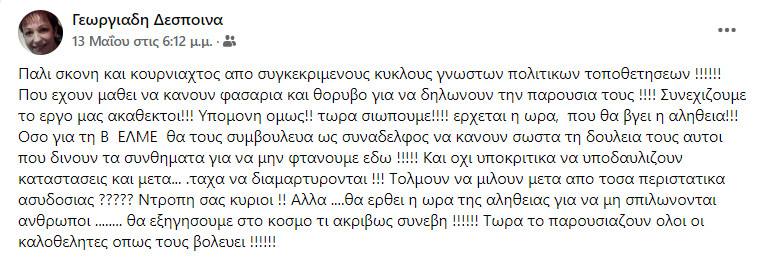 Ακολουθούν τα όσα αναφέρει η ίδια η Διευθύντρια του Σχολείου, κα. Δέσποινα Γεωργιάδη μέσα από τον προσωπικό της λογαριασμό στο Facebook: