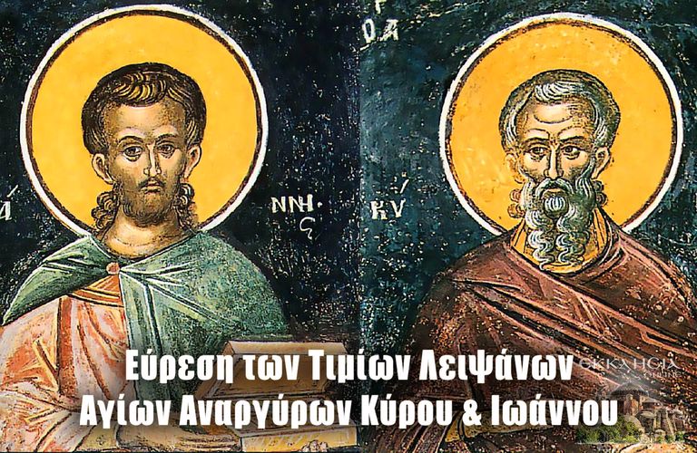 Σήμερα, εύρεση των Τιμίων Λειψάνων των Αγίων Αναργύρων Κύρου και Ιωάννου