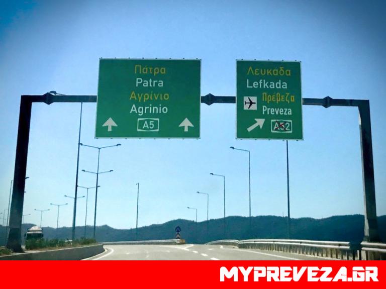 Το τελευταίο… κρούσμα σημειώθηκε στην Ιόνια Οδό. Η πινακίδα που πληροφορεί τους διερχόμενους οδηγούς για το πλησιέστερο αεροδρόμιο γράφει… Πρέβεζα.