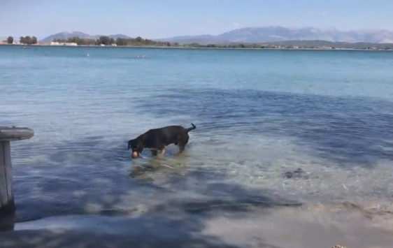Αδυναμία στο… ψάρεμα φαίνεται να έχει ένας σκύλος στην Πρέβεζα.