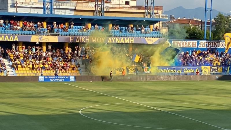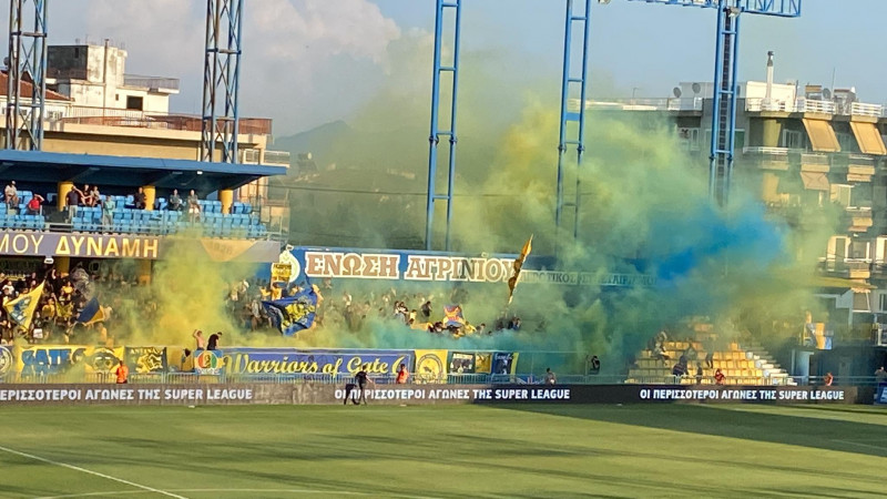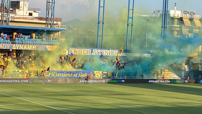 Εντυπωσιακή υποδοχή επιφύλαξαν οι φίλαθλοι και οι οπαδοί του Παναιτωλικού στην Ομάδα τους κατά την είσοδο των δύο ενδεκάδων στον αγωνιστικό χώρο μερικά λεπτά πριν την έναρξη του παιχνιδιού.