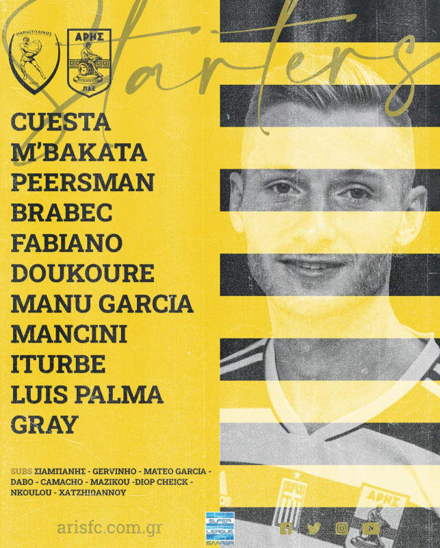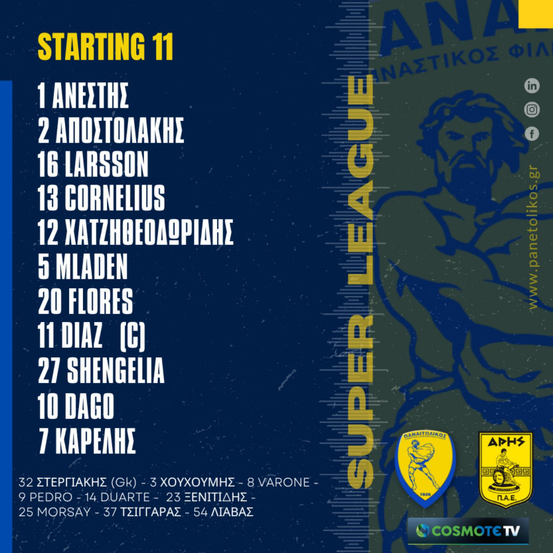 Super League 1: Οι ενδεκάδες του αγώνα Παναιτωλικός – Άρης