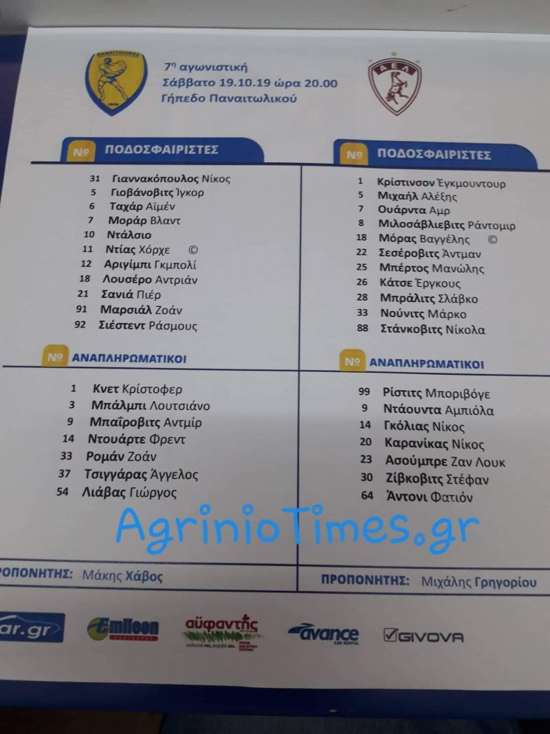 SL1 – 7η αγωνιστική: Οι ενδεκάδες του Παναιτωλικός – Α.Ε.Λ.