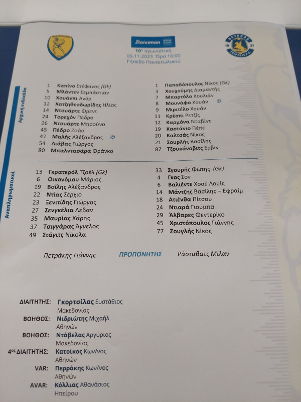 Μίλαν Ράσταβατς και Γιάννης Πετράκης κατέληξαν στις ενδεκάδες με τις οποίες θα ξεκινήσουν την αναμέτρηση στο πλαίσιο της 10ης Αγωνιστικής του Πρωταθλήματος της Stoiximan Super League 1 για τη σεζόν 2023 – 2024.