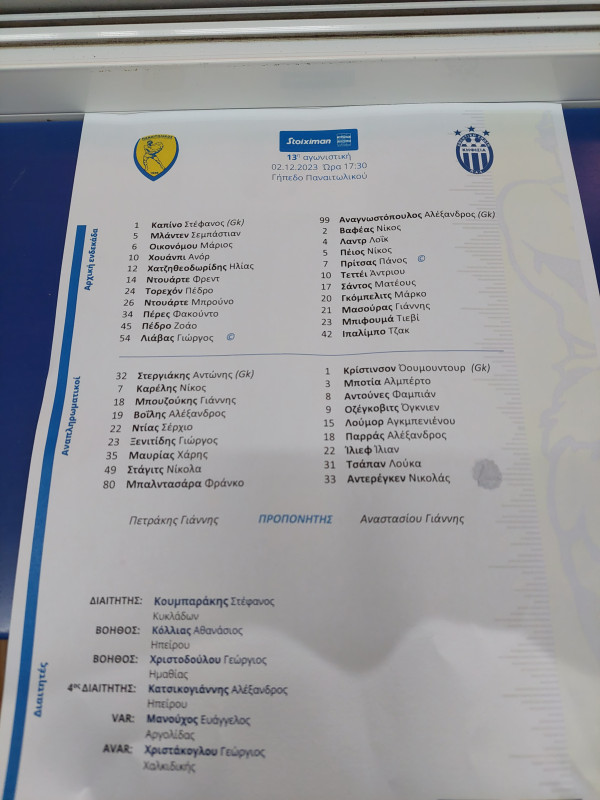 Γιάννης Αναστασίου και Γιάννης Πετράκης κατέληξαν στις ενδεκάδες με τις οποίες θα ξεκινήσουν την αναμέτρηση στο πλαίσιο της 13ης Αγωνιστικής του Πρωταθλήματος της Stoiximan Super League 1 για τη σεζόν 2023 – 2024.