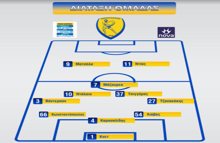 Στη συνέχεια μπορείτε να δείτε και τη διάταξη της ομάδας του Παναιτωλικού