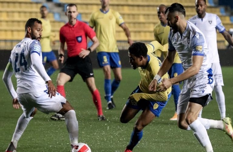 Σέντρα στο ματς υπό καταρρακτώδη βροχή και οι γηπεδούχοι μπήκαν στο Γήπεδο με το… πόδι στο γκάζι. Στα πρώτα 15 λεπτά «κυριάρχησαν» και παρότι ο αγωνιστικός χώρος ήταν «βαρύς» έβαζαν την μπάλα κάτω και με κορυφαίους του Ντουάρτε, Μεντόσα, Φλόρες «φλέρταραν» δις με το γκολ. Η πρώτη στο 3’ όταν μετά από ωραία ατομική ενέργεια και σουτ του Πορτογάλου η μπάλα πέρασε λίγο άουτ και η δεύτερη στο 14’ με τον Καρέλη που βρέθηκε σε θέση βολής μέσα στα αντίπαλα καρέ αλλά ο Χουτεσιώτης απέκρουσε το σουτ του. Το παιχνίδι παίζονταν στο αμυντικό τρίτο των φιλοξενουμένων και οι «κυανοκίτρινοι» ήταν καλύτεροι.