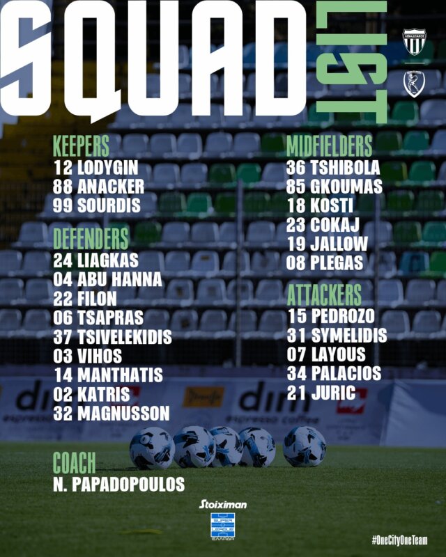 Ο Νίκος Παπαδόπουλος έχει για πρώτη φορά τους Γιούριτς και Μάγκνουσον εκτός όμως βρίσκονται οι Μπάλτζι, Βέρμπιτς καθώς και ο πρώτος σκόρερ Άλεν Όζμπολτ.