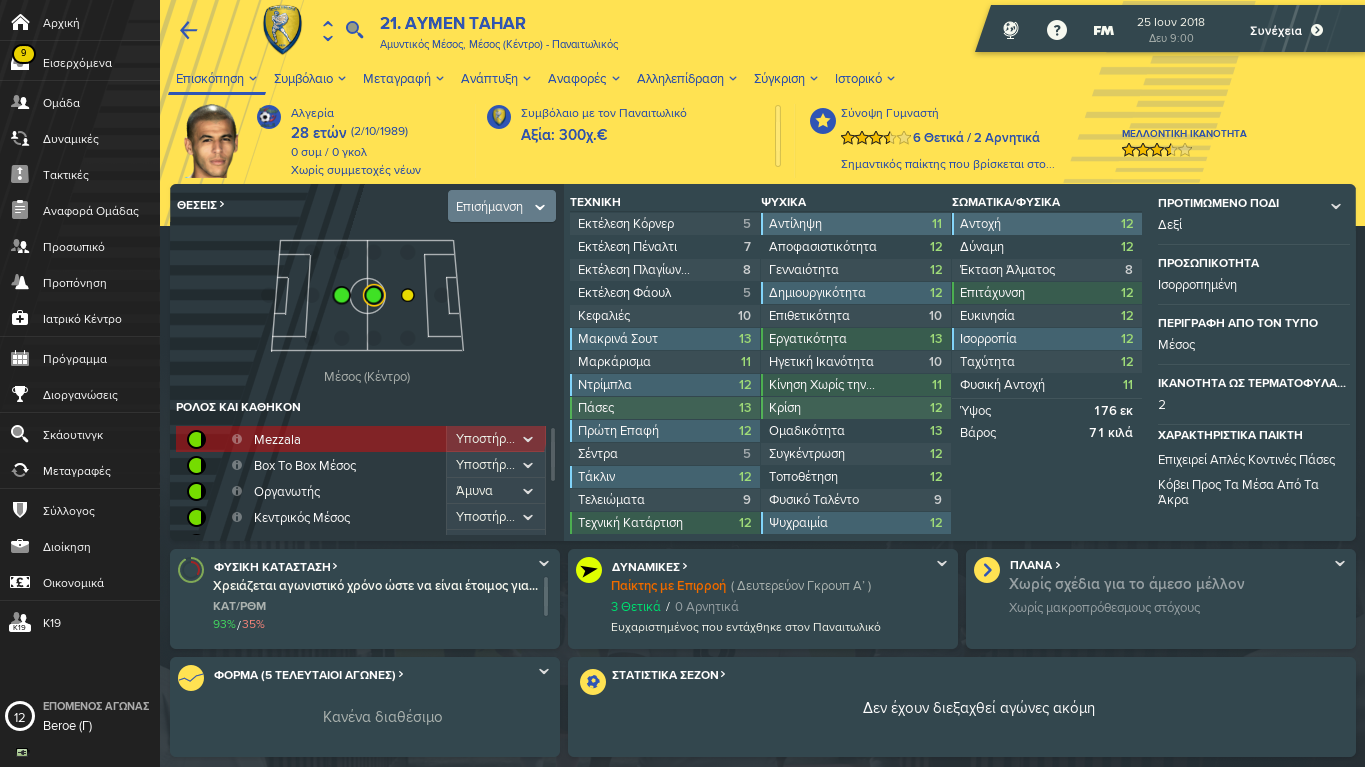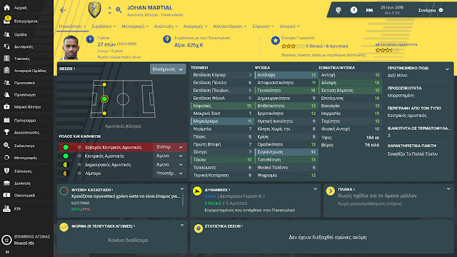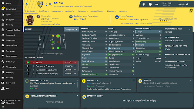 Εδώ ίσως ο Παναιτωλικός να έχει τραβήξει… λαχείο. Ένας κεντρικός χαφ με πιο επιθετικό χαρακτήρα, μόλις 20 ετών αλλά ολοκληρωμένος, με πλήθος χαρακτηριστικών άνω του 12. Το 5άστερο στην Μελλοντική Ικανότητα μιλάει από μόνο του. Εργατικός, ταχύς, με αξιόλογη κατάρτιση και μοίρασμα της μπάλας. Μακάρι η πραγματικότητα στο γήπεδο να είναι όπως τα λέει το Manager.