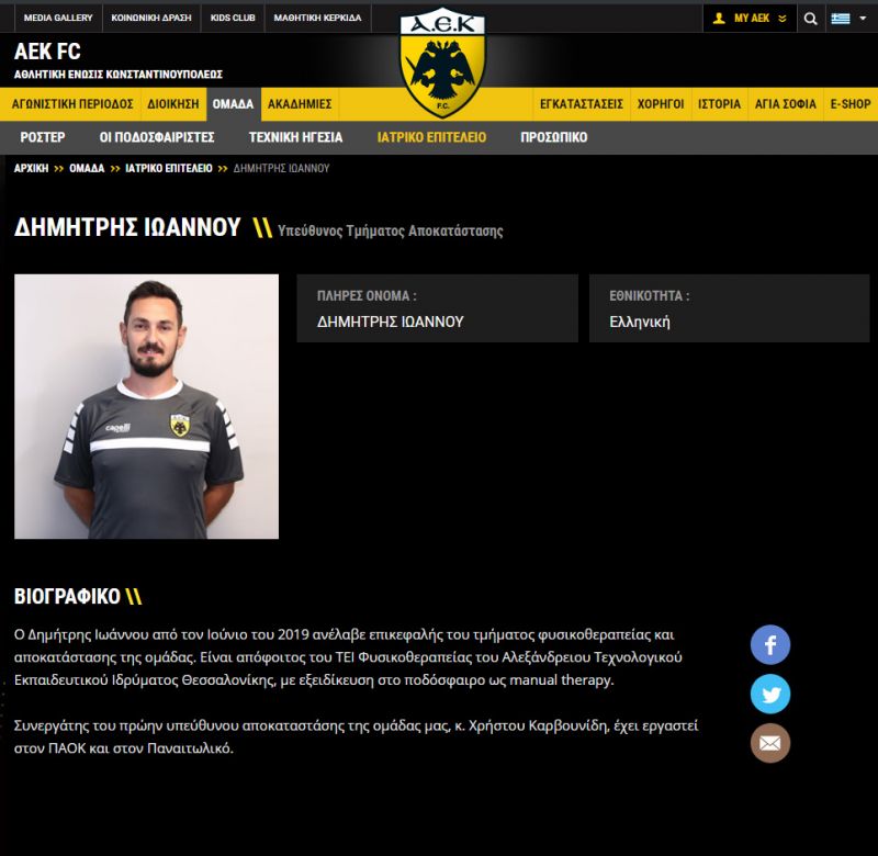 Ο Παναιτωλικός τροφοδοτεί τις μεγάλες ομάδες με παίκτες και όχι μόνο. Μετά την παραχώρηση του Μιχάι στον Π.Α.Ο.Κ., έδωσε στην Α.Ε.Κ. τον φυσικοθεραπευτή Δημήτρη Ιωάννου! Ανήκε στο ιατρικό επιτελείο του Παναιτωλικού από τα πρώτα χρόνια παρουσίας της ομάδας στη Super League και πρόσφατα δέχτηκε πρόταση από την Ένωση. Ο Παναιτωλικός δεν εμπόδισε το «βήμα παραπάνω» και έτσι μετακόμισε στην Αθήνα αναλαμβάνοντας υπεύθυνος αποκατάστασης στην Α.Ε.Κ.