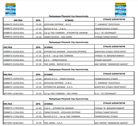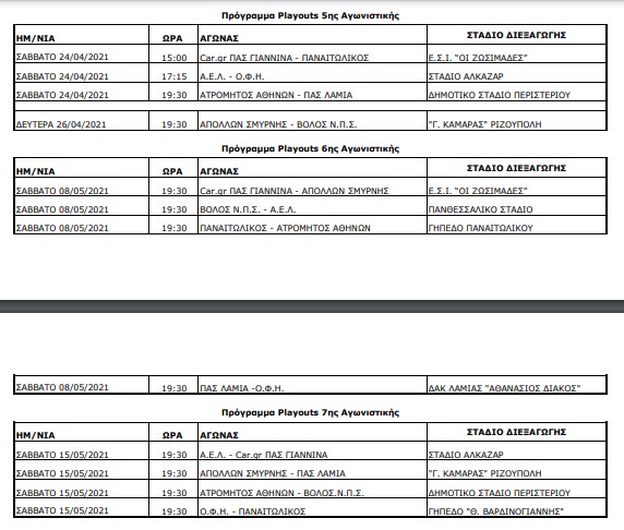 Να σημειωθεί πως σε όλη την διάρκεια των πλέι-άουτ οι αγώνες του Παναιτωλικού είτε εντός, είτε εκτός θα διεξάγονται κάθε Σάββατο.