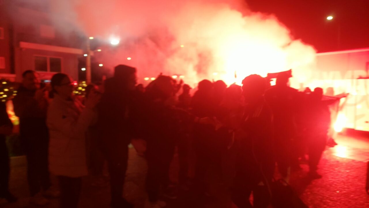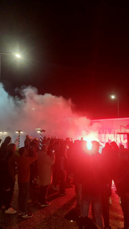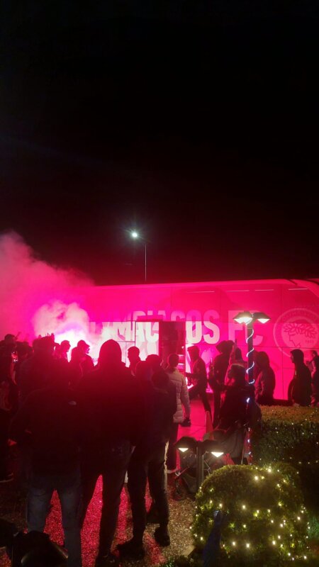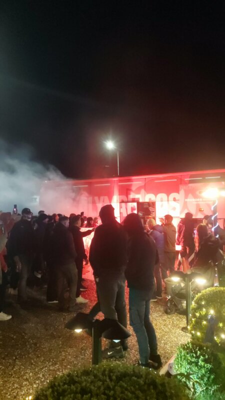 Η βροχόπτωση που δεν έλεγε να σταματήσει δεν πτόησε όλους όσοι έβαλαν στόχο να δουν τους Ποδοσφαιριστές από κοντά και να τους υποδεχθούν κάνοντας κόκκινη τη νύχτα!
