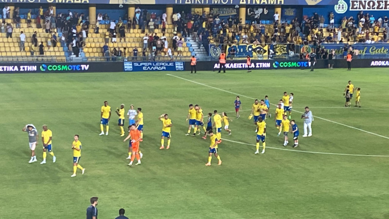 Μετά το τέλος του παιχνιδιού οι παίκτες κατευθύνθηκαν προς τους οργανωμένους χειροκροτώντας οι μεν τους δε.