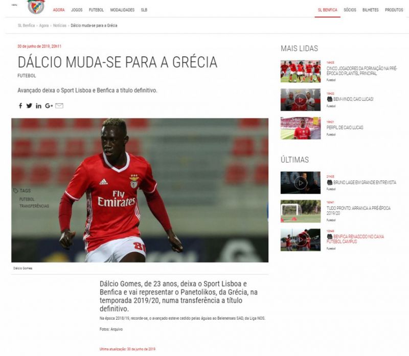 Η ανακοίνωση της Μπενφίκα ήρθε να επιβεβαιώσει ότι ο Ντάλσιο λογίζεται πλέον παίκτης του Παναιτωλικού. Η «Αετοί» στην επίσημη ιστοσελίδα τους λένε ότι ο 23χρονος μέσος έρχεται με ελεύθερη μεταγραφή στην Ελλάδα.