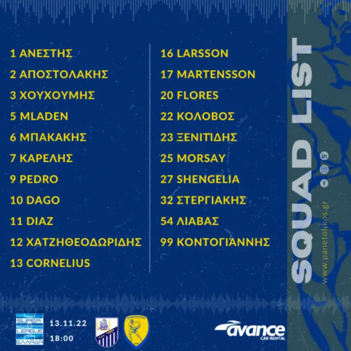 SL1 – Παναιτωλικός: Η αποστολή για τον αγώνα κόντρα στον Π.Α.Σ. Λαμία 1964