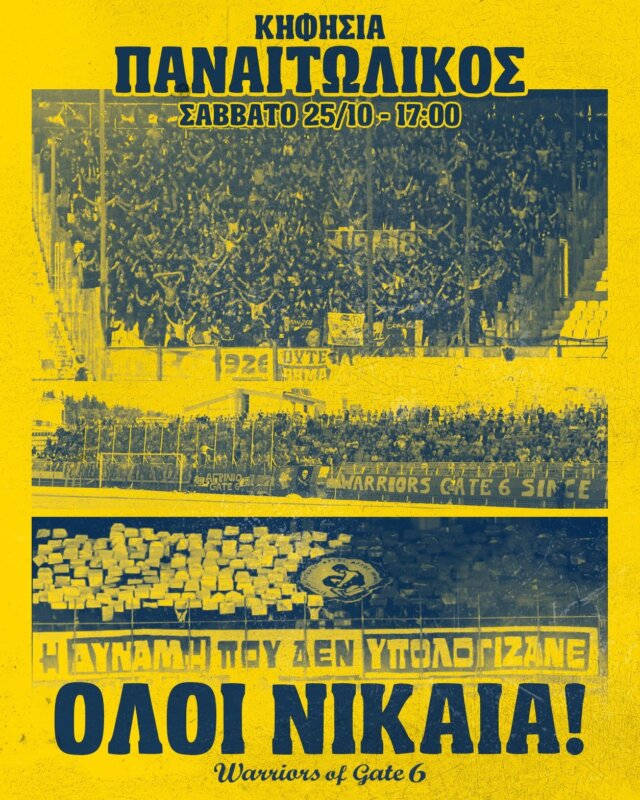 Ο Παναιτωλικός την 8η Αγωνιστική της SL1 δε θα γίνει μόνο καθώς η Θύρα 6 ετοιμάζεται για… απόβαση στη Νίκαια, λόγω του παιχνιδιού με τη Κηφισιά του Τεττέι!