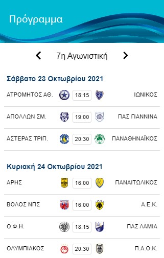 Το ερχόμενο Σαββατοκύριακο διεξάγεται η 7η αγωνιστική του Πρωταθλήματος με τον Παναιτωλικό να αντιμετωπίζει εκτός έδρας τον Άρη, αν και το ματς που «κλέβει» την παράσταση είναι το μεγάλο ντέρμπι κορυφής ανάμεσα σε Ολυμπιακό και Π.Α.Ο.Κ. το οποίο θα πραγματοποιηθεί κεκλεισμένων των θυρών.
