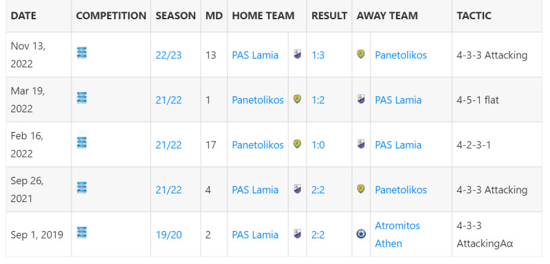 Η τελευταία νίκη του Π.Α.Σ. Λαμία στο Αγρίνιο ήταν στις 19 Μαρτίου του 2022 όπου είχε επικρατήσει τότε με 1-2 σκορ, με τον Τζιανλούκα Φέστα να κάθεται στο πάγκο της ομάδας. Σκόρερ εκείνης της αναμέτρησης ήταν ο Μανούσος και ο Ελευθεριάδης ενώ είχε μειώσει για τους γηπεδούχους ο Ντουάρτε.