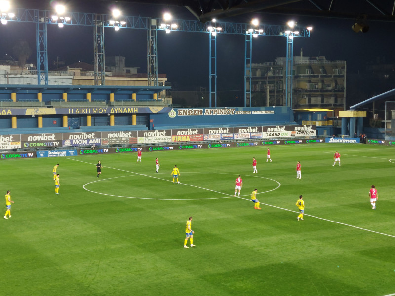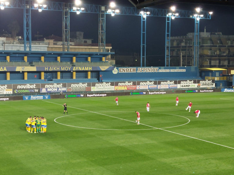 Οι Αγρινιώτες κινήθηκαν πολύ γρήγορα, με τον Νίκο Καρέλη να πατάει περιοχή από τα δεξιά και να βρίσκει τον Χουάνπι, ο οποίος έκανε ωραίο πλασέ με το αριστερό νικώντας τον Χόβαν.