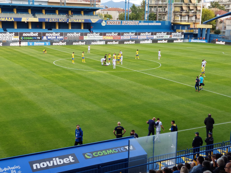 30‘ Ο Μπαρτόλο είναι στο έδαφος. Μάλλον δεν μπορεί να συνεχίσει. Νωρίτερα έκανε νόημα στον πάγκο ότι δεν μπορεί να συνεχίσει