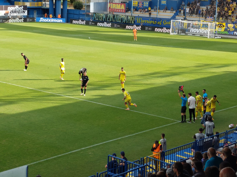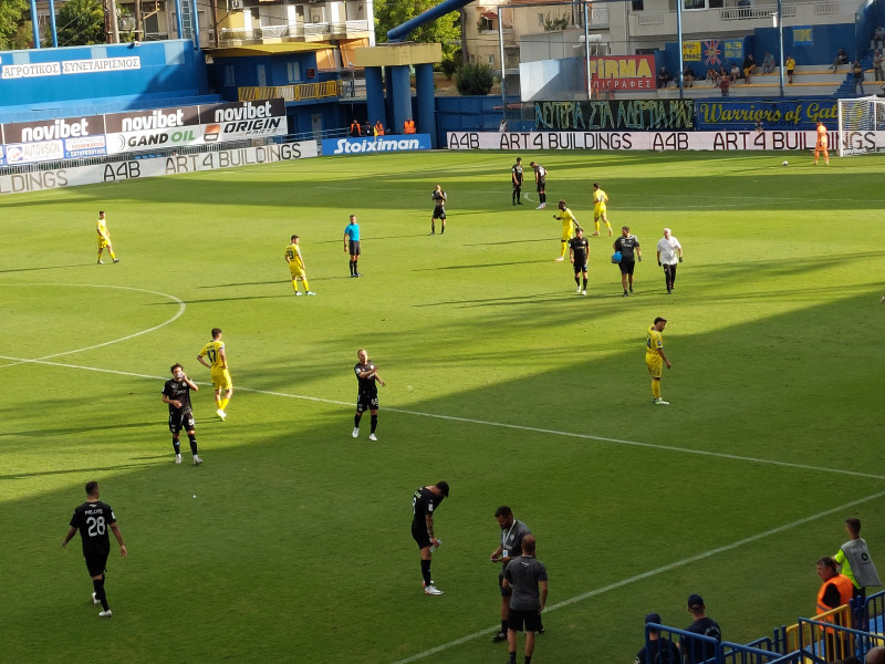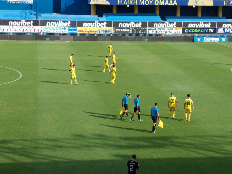 54′ Κίτρινη κάρτα στον Πασαλίδη για φάουλ στον Ντουάρτε σε πλάγια θέση εκτός περιοχής.