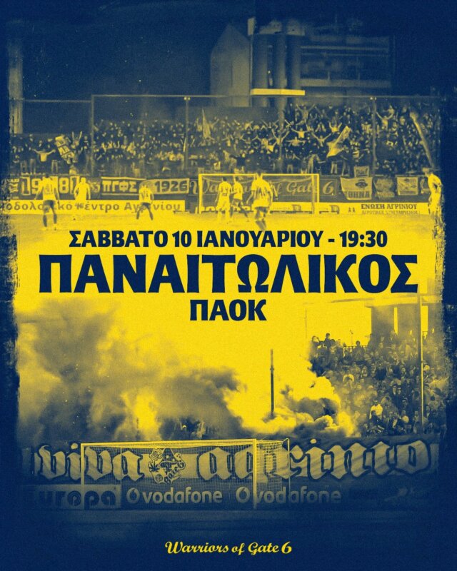 «Αύριο Σάββατο και ώρα 19:30 ο Παναιτωλικός μας αντιμετωπίζει τον Π.Α.Ο.Κ. και όλοι οι δρόμοι οδηγούν στην Προυσιωτίσσης.