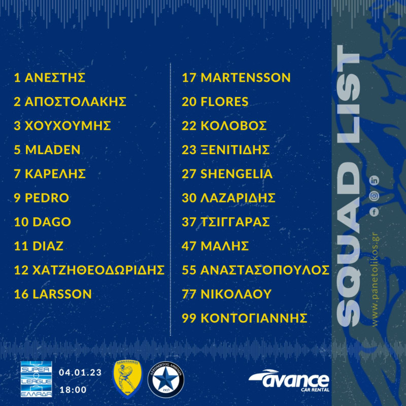 SL1: Χωρίς Λιάβα και Στεργιάκη η αποστολή του Παναιτωλικού με τον Ατρόμητο