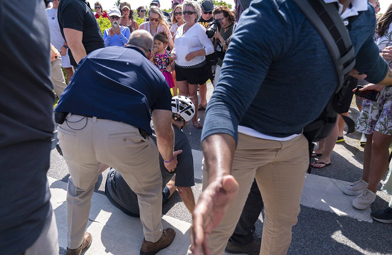 Αμέσως τον περικύκλωσαν οι άνδρες της ασφάλειάς του, όμως εκείνος σηκώθηκε πολύ γρήγορα. Όταν τον ρώτησαν πώς αισθάνεται, απάντησε «είμαι καλά».