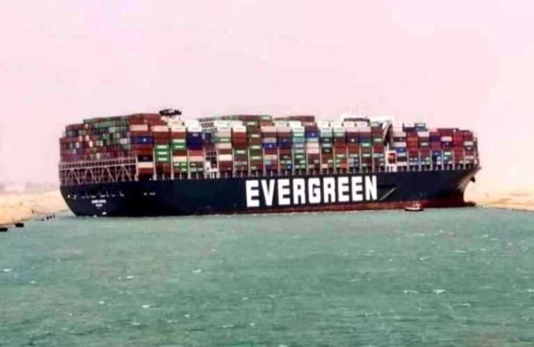 Η Evergreen Marine Corp., στην οποία ανήκει το σκάφος, ανέφερε πως «πιθανόν το πλοίο χτυπήθηκε από ριπή ανέμου» και προσάραξε. Η εταιρεία «συζητά με όλα τα μέρη, συμπεριλαμβανομένης της Αρχής που διαχειρίζεται τη διώρυγα, για να προσφερθεί βοήθεια στο πλοίο το συντομότερο δυνατόν», πρόσθεσε.