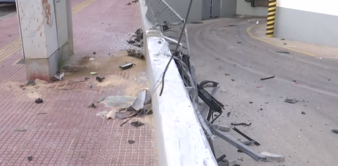 Το αυτοκίνητο βρέθηκε στον αέρα και κατέληξε σε μάντρα σούπερ μάρκετ, προτού σταματήσει στη μέση του δρόμου.