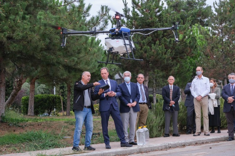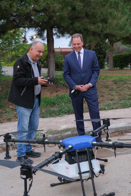Ιδιαίτερο ενδιαφέρον έδειξε ο κ. Λιβανός για τη νέα μέθοδο ψεκασμών στις καλλιέργειες, μέσω drones, που χρησιμοποιεί η Α.Γ.Σ., καθώς, όπως σημείωσαν οι καθηγητές της Σχολής, εξοικονομούνται πόροι και χρησιμοποιούνται λιγότερα φυτοφάρμακα, με αποτέλεσμα να μειώνεται το κόστος παραγωγής, να ενισχύεται η ποιότητα των τροφίμων που παράγονται αλλά και να προστατεύεται το περιβάλλον.