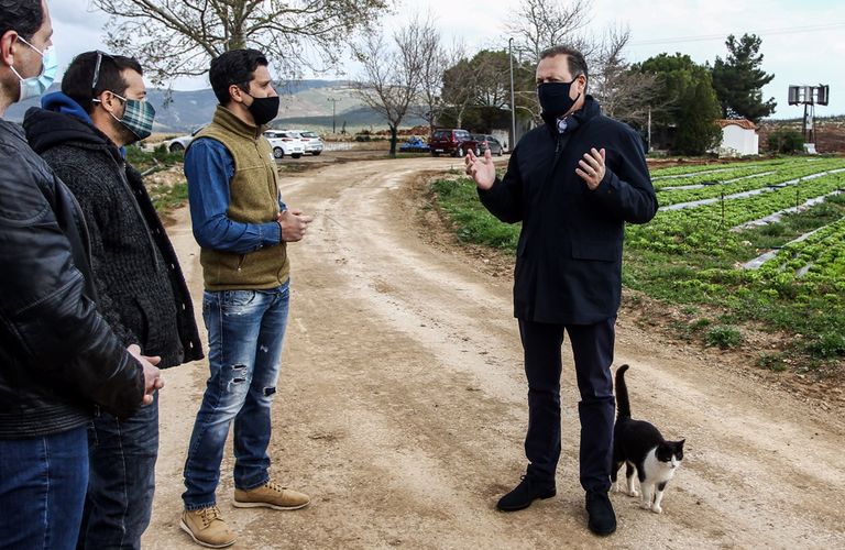 - Επίσκεψη Λιβανού και Οικονόμου σε καλλιέργειες στο Μαραθώνα και συζήτηση με αγρότες
