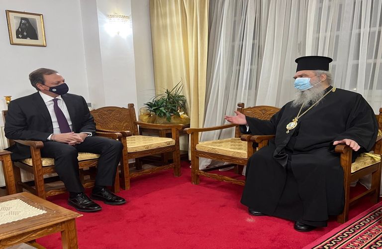 Στη συνέχεια επισκέφθηκε τον Μητροπολίτη Μονεμβασιάς και Σπάρτης κ.κ. Ευστάθιο τον οποίο συνεχάρη για το φιλανθρωπικό του έργο καθώς συντηρεί 17 εκκλησιαστικές δομές για τη στήριξη αδυνάμων πολιτών.