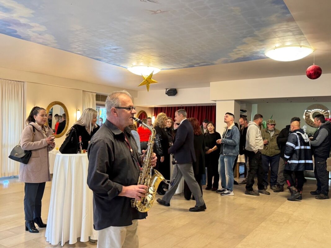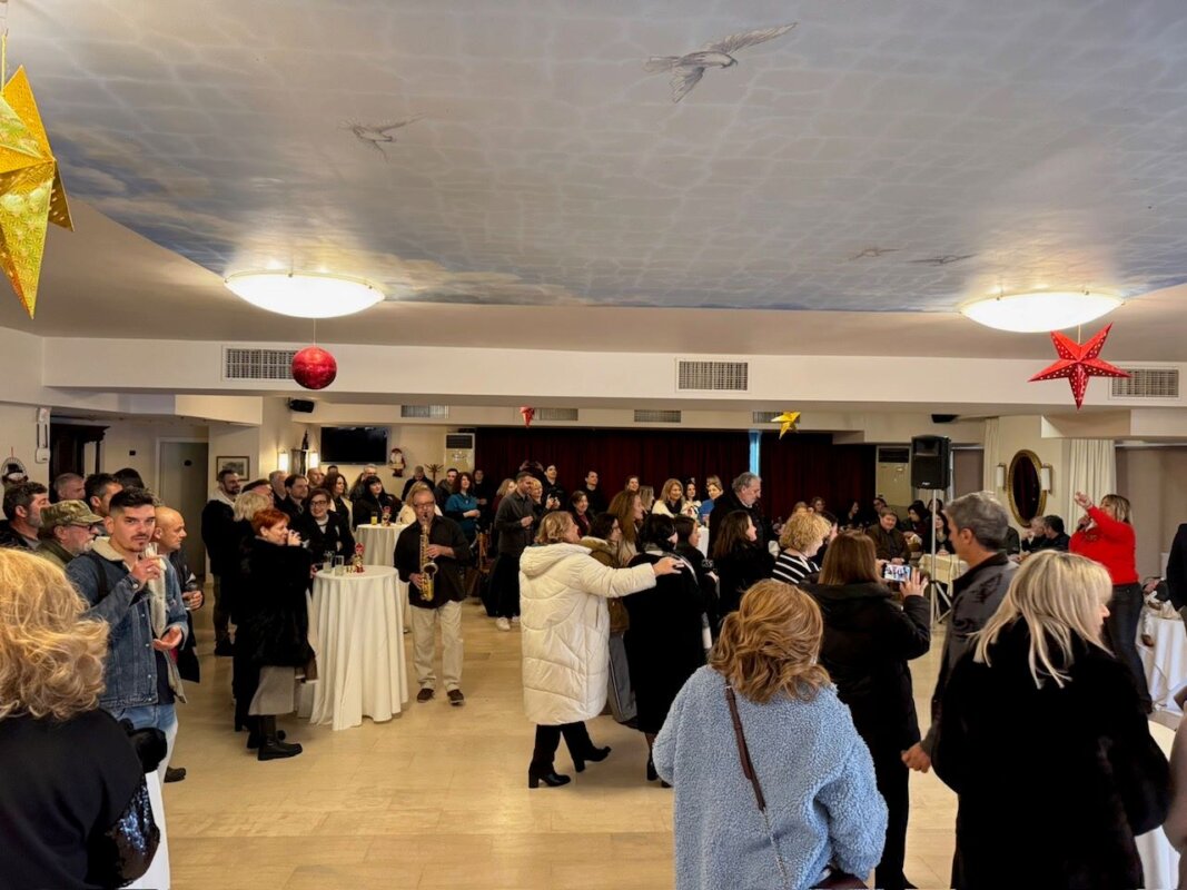 Στη μικρή αυτή γιορτή, που πραγματοποιήθηκε ενόψει των Χριστουγέννων και των γιορτινών ημερών που ακολουθούν, προσφέρθηκαν γλυκά, κεράσματα, χυμοί και αναψυκτικά, ενώ τη συνάντηση πλαισίωσαν και μουσικές νότες από σαξοφωνίστα, προσδίδοντας έναν διακριτικό εορταστικό τόνο.