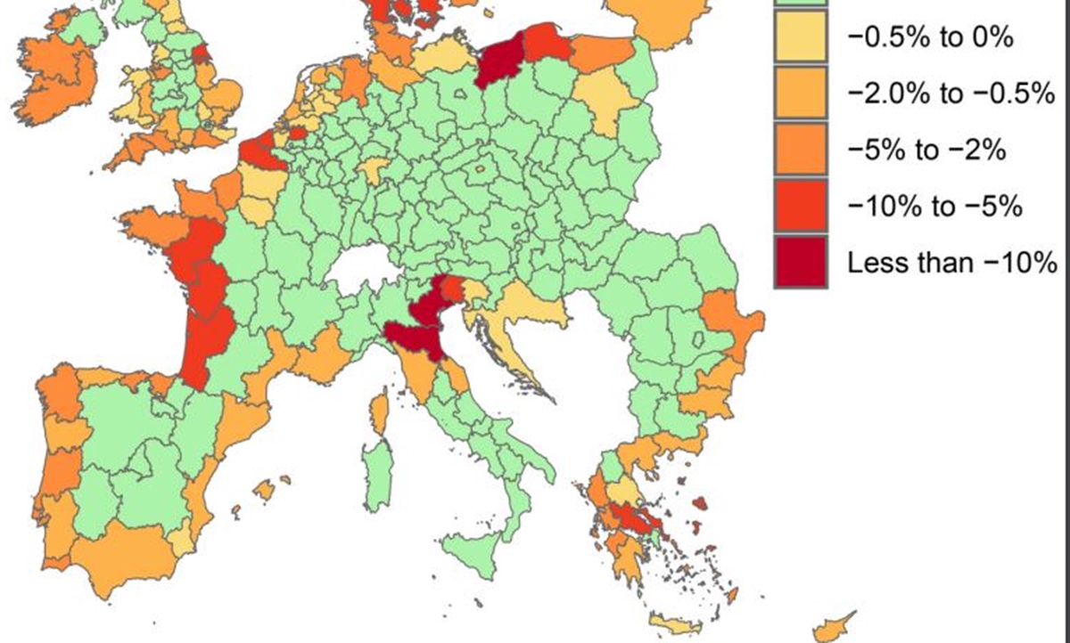 Ο κ. Χατζηβασιλειάδης, ωστόσο, σπεύδει να υπογραμμίσει ότι μπορεί οι περιφερειακές επιπτώσεις να είναι πολύ μεγαλύτερες στις παράκτιες περιοχές και κάποιες ευρωπαϊκές ενδοχώρες να βλέπουν μέτρια κέρδη, αλλά η οικονομία είναι αλληλένδετη. «Το ερώτημα είναι: αυτά τα κέρδη αρκούν για να αντισταθμίσουν τις απώλειες στις παράκτιες περιοχές; Δυστυχώς, η απάντηση είναι πως όχι. Η συνολική επίδραση είναι ακόμα αρνητική, με κάποιες εξαιρέσεις, όπως η Γερμανία, όπου τα κέρδη και οι απώλειες ισορροπούν στο μηδέν», τονίζει.