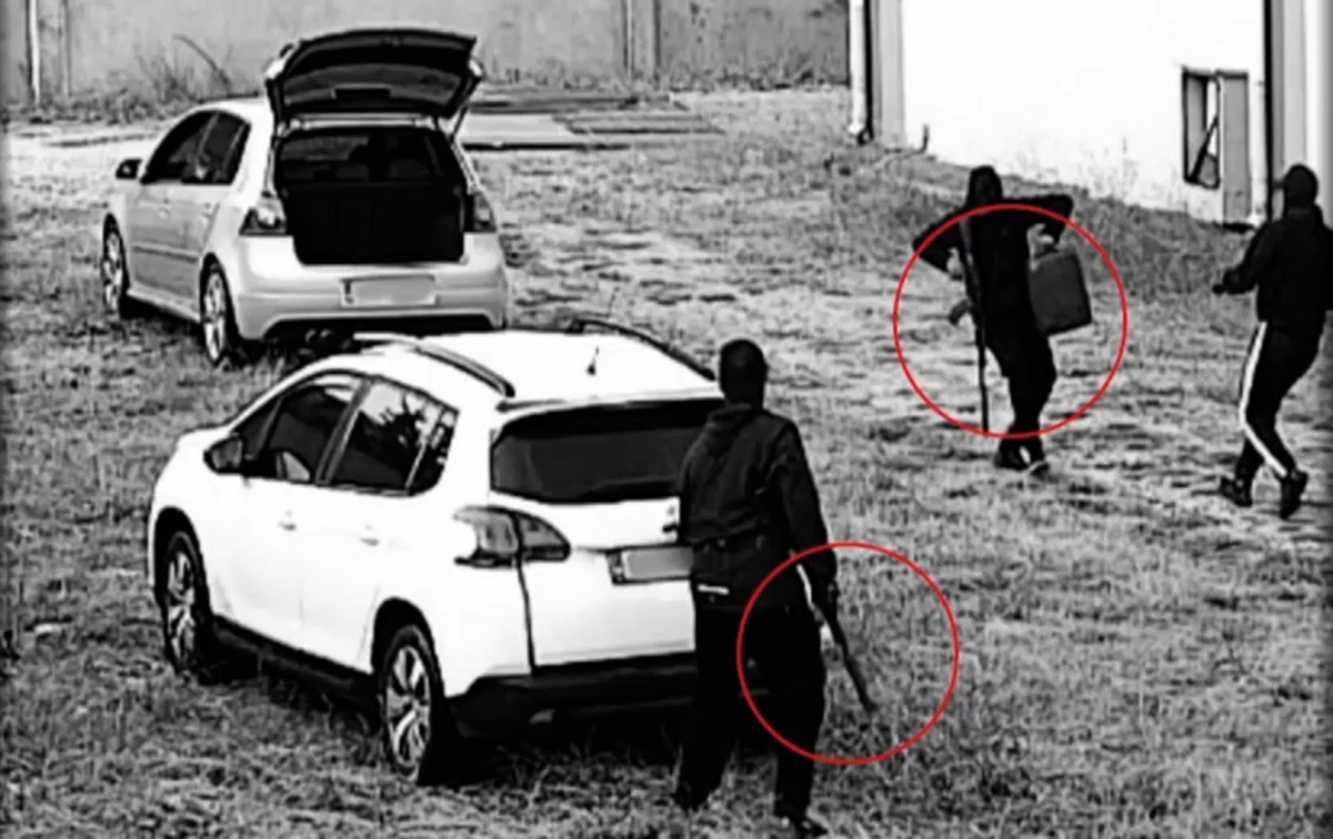 Όπως φαίνεται στα φωτογραφικά ντοκουμέντα, οι δράστες κρατούν βαρύ οπλισμό, ενώ μεταφέρουν και μπιτόνια με βενζίνη.