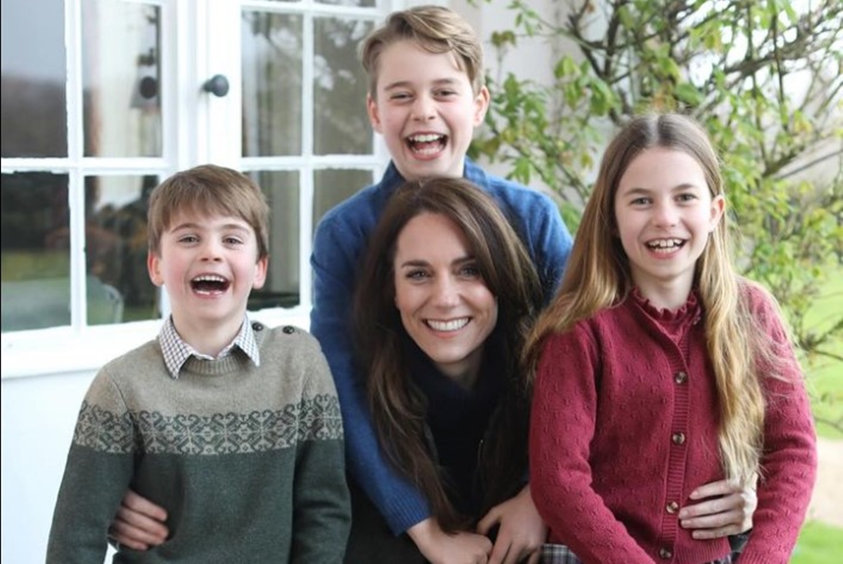 Η πρώτη επίσημη φωτογραφία της πριγκίπισσας της Ουαλίας δόθηκε στη δημοσιότητα μετά την εγχείρηση στην κοιλιακή χώρα στην οποία υποβλήθηκε τον Ιανουάριο. Η φωτογραφία της Κέιτ, χαμογελαστή και αγκαλιά με τα τρία της παιδιά βάζει φρένο στις φήμες για την εξέλιξη της υγείας της στα μέσα κοινωνικής δικτύωσης που υποχρέωσαν το παλάτι να σπάσει την σιωπή του για τις θεωρίες συνομωσίας για την υγεία της πριγκίπισσας.