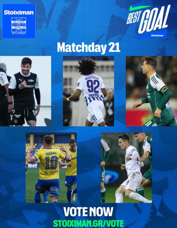 Μπείτε στο stoiximan.gr/vote και ψηφίστε το Stoiximan Best Goal για την 21η Αγωνιστική.