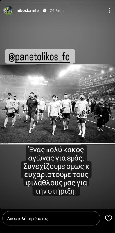 Ο Νίκος Καρέλης, εκ των αρχηγών του club, βγήκε… μπροστά και μέσω των Social Media έδωσε το «σύνθημα» για την επόμενη ημέρα στο Αγρίνιο, ενώ στάθηκε και στην παρουσία των φίλων των «κυανοκίτρινων» στο «Γ. Καραϊσκάκης».