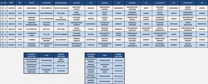 Από την Ελληνική Ποδοσφαιρική Ομοσπονδία ανακοινώνονται οι ορισμοί της Κεντρικής Επιτροπής Διαιτησίας για την 17η αγωνιστική της Super League.