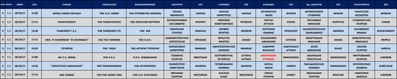 Από την Κεντρική Επιτροπή Διαιτησίας της Ε.Π.Ο. ανακοινώνονται οι ορισμοί διαιτητών, βοηθών διαιτητών, 4ων διαιτητών και παρατηρητών διαιτησίας για τα παιχνίδια της 9ης αγωνιστικής του Πρωταθλήματος Super League 2017-2018.